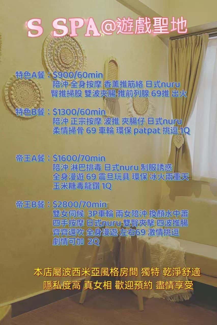 全身按摩,環保吹,推前列腺,抓龍筋,全套,口交,夾X仔,緊身衣,角色扮演,收陰夾腸,BM,特別服務,推油,性虐待,六九互舐,乳交,潮吹,戀腳腳交,日式Nuru,絲襪誘惑,制服誘惑,毒龍鑽,出火,波推,高踭鞋,柔情掃股,推大脾筋,戀物,密宗按摩