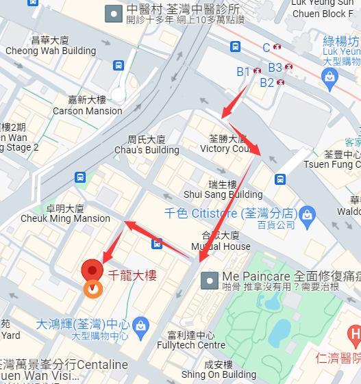 (荃灣MTR-B1出口.富華中心直行過天橋轉右落,轉左穿過小巷到川龍街直行,旁邊有7~11側樓梯入上1/F轉右. 5分鐘路程) 電話: