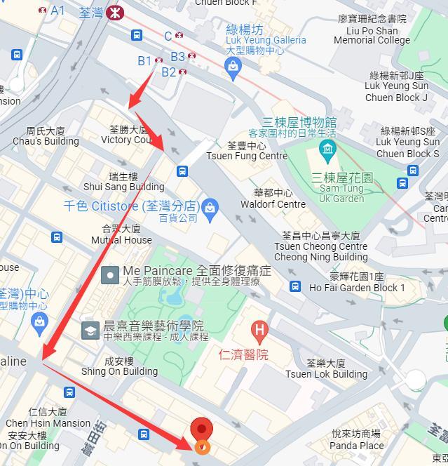 (荃灣MTR-B1出口行過天橋到眾安街直行到沙咀道左轉行3分鐘左右見到寶富麗巷仔入見到) 電話: